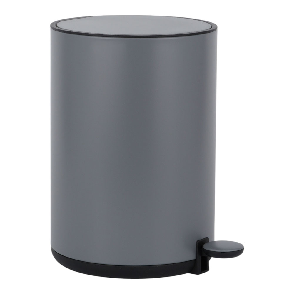 Κάδος απορριμμάτων μεταλλικός, στρογγυλός, σε γκρι χρώμα με ματ φινίρισμα και καπάκι από ABS με αυτόματο κλείσιμο. Πεντάλ υψηλής αντοχής, με σύστημα ανοίγματος με το πόδι και αφαιρούμενο εσωτερικό κάδο με χειρολαβή για εύκολο καθάρισμα.