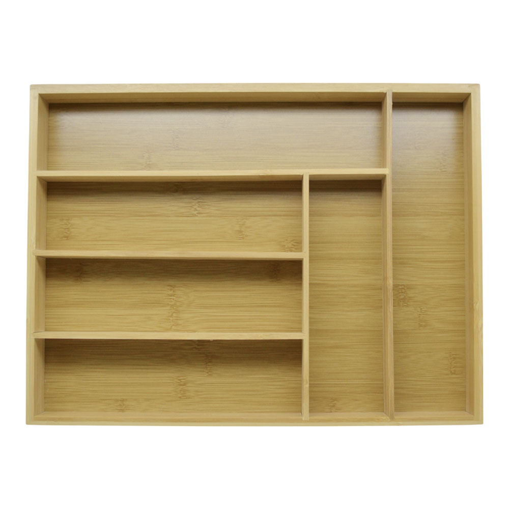Ξύλινη θήκη οργάνωσης συρταριού από φυσικό bamboo, με έξι χωρίσματα διαφορετικών μεγεθών. Ιδανική για την τακτοποίηση μαχαιροπήρουνων, κουζινικών εργαλείων ή μικροαντικειμένων,...
