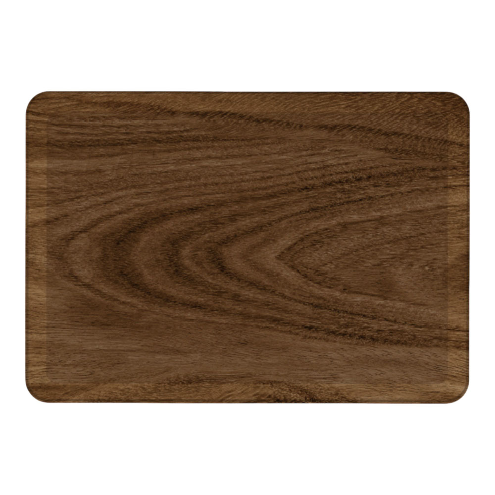 Δίσκος σερβιρίσματος από μελαμίνη, ορθογώνιος με σχέδιο εφέ ξύλου σε καφέ απόχρωση και ματ φινίρισμα. Οι δίσκοι από μελαμίνη είναι ιδιαίτερα χρηστικοί, ανθεκτικοί και κατάλληλοι για τη χρήση σε φαγητό.