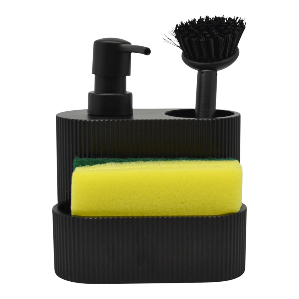 ANKOR Dispenser Κουζίνας Πολυεστερικό Μαύρο με Θήκη για Σφουγγάρι & Βουρτσάκι | Κομψό & Ανθεκτικό