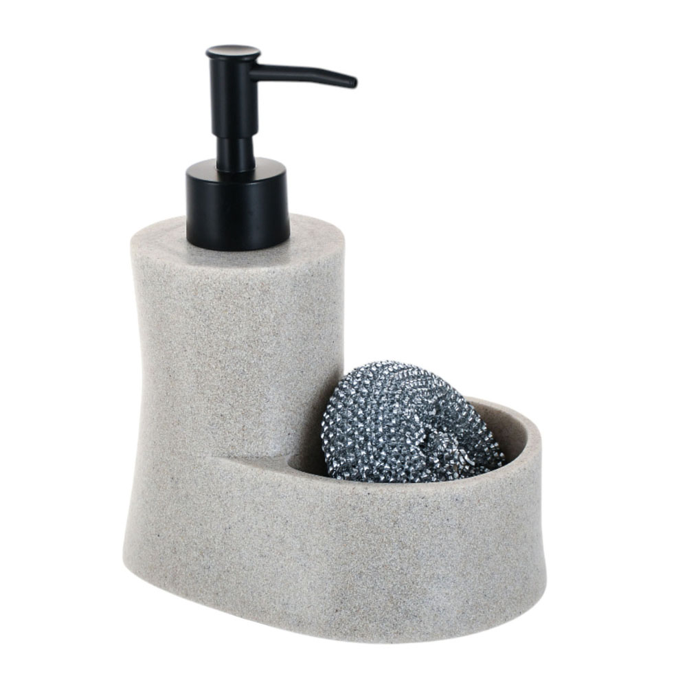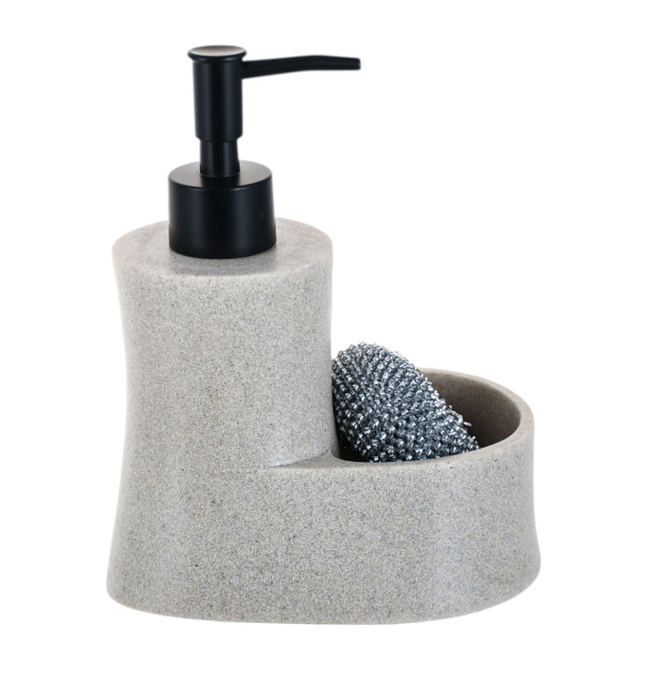 Οργανώστε τον πάγκο της κουζίνας σας με το πολυεστερικό dispenser ANKOR σε μαύρο χρώμα με όψη πέτρας και ενσωματωμένη θήκη για σφουγγάρι.