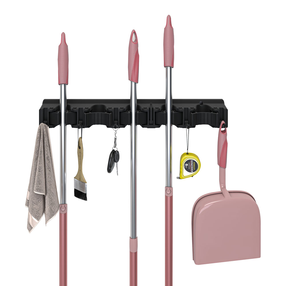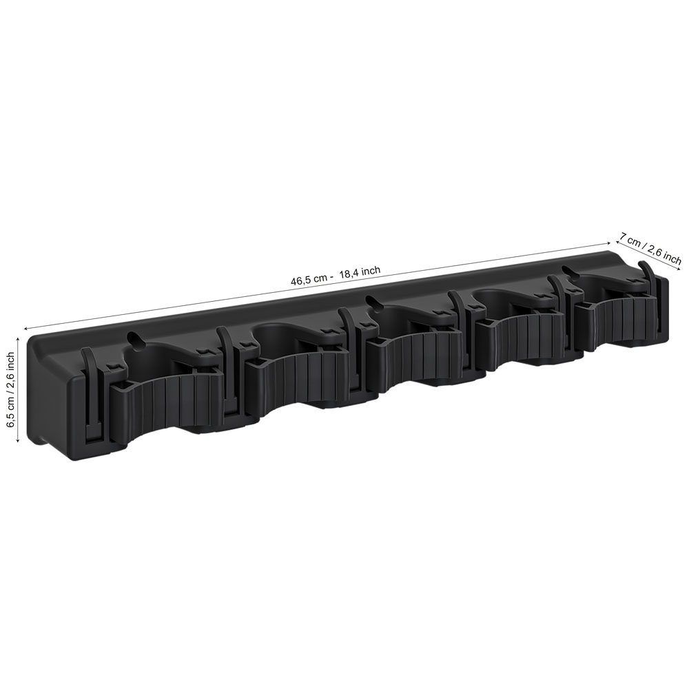 Οργανώστε εύκολα τον χώρο σας με την πλαστική κρεμάστρα τοίχου ANKOR για σκούπες και εργαλεία. Διαθέτει 5 θέσεις για εργαλεία και 6 γάντζους για αξεσουάρ, προσφέροντας ανθεκτικότητα και πρακτικότητα σε γκαράζ, αποθήκη ή κουζίνα. Εύκολη στην τοποθέτηση και ιδανική για κάθε χώρο.