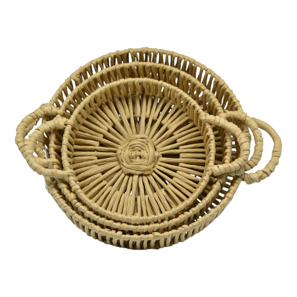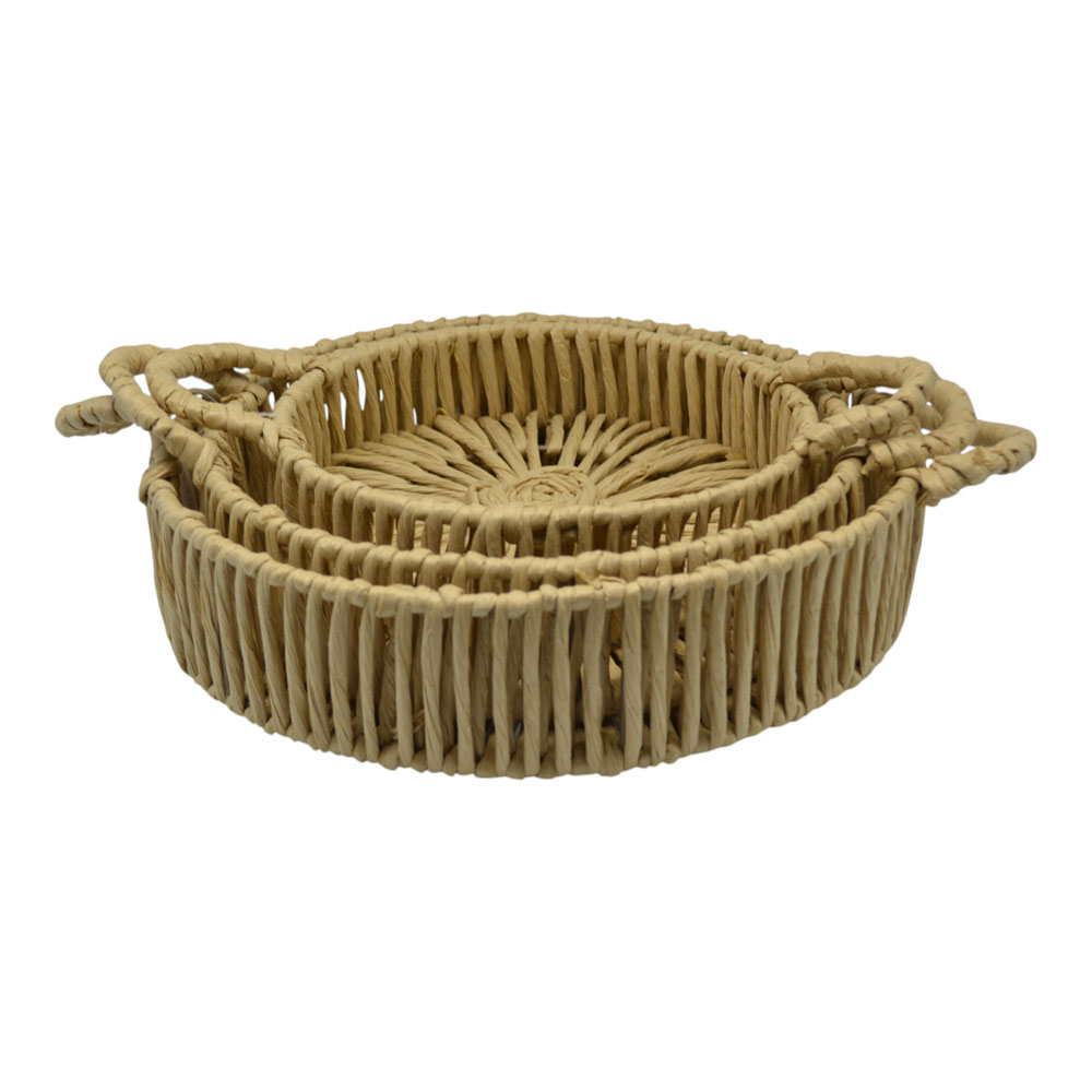 Προσθέστε φυσική ομορφιά και πρακτικότητα στον χώρο σας με το σετ 3 πλεκτών καλαθιών ANKOR. Κατασκευασμένα από ανθεκτικό σχοινί σε φυσική απόχρωση, ταιριάζουν σε κάθε στυλ διακόσμησης. Ιδανικά για αποθήκευση ρούχων, αξεσουάρ ή διακοσμητικά αντικείμενα, συνδυάζουν λειτουργικότητα και αισθητική. Ο κομψός πλεκτός σχεδιασμός τους προσφέρει ανθεκτικότητα και φυσική αισθητική, χαρίζοντας μια ζεστή και boho πινελιά σε κάθε χώρο.. Διαστάσεις: 35x8εκ. 30x7εκ. 25x6εκ.