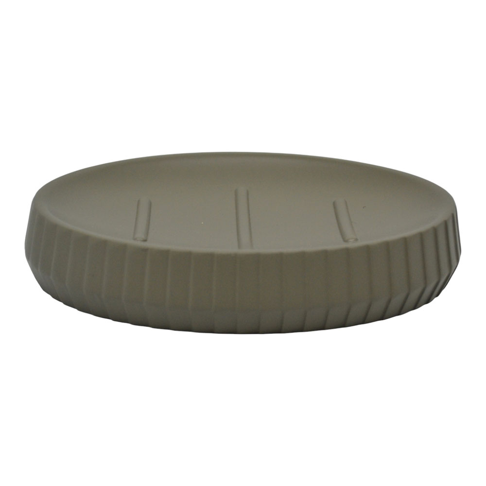 Σαπουνοθήκη πολυεστερική σε λαδί ματ απόχρωση με κάθετη ριγωτή διακόσμηση. Ο μοντέρνος σχεδιασμός της προσφέρει μίνιμαλ αισθητική και ταιριάζει ιδανικά σε κάθε μπάνιο.