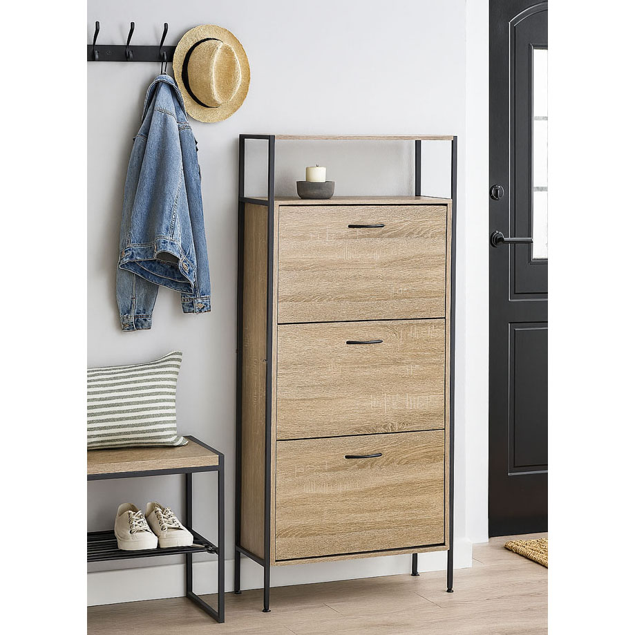 Ο κομψός συνδυασμός ξύλου και μαύρου μετάλλου ταιριάζει σε κάθε μοντέρνα διακόσμηση, από minimal έως industrial. Η πρακτική κατασκευή της καθιστά την παπουτσοθήκη εύκολη στη χρήση, διατηρώντας τον χώρο τακτοποιημένο και οργανωμένο, ενώ αποτελεί και εντυπωσιακό διακοσμητικό στοιχείο για κάθε είσοδο ή δωμάτιο.