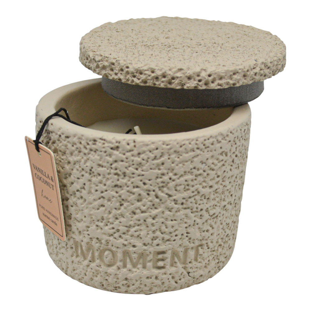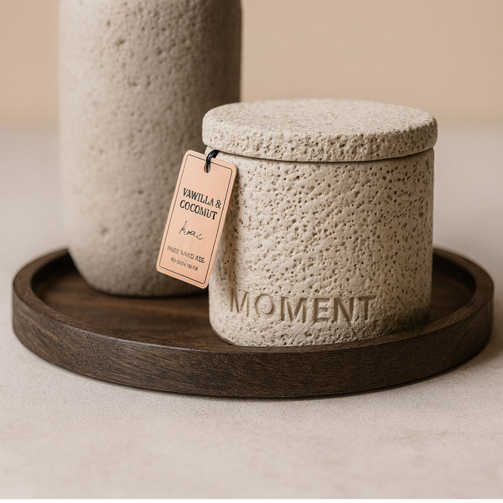 Η τσιμεντένια συσκευασία με καπάκι προσφέρει μοντέρνο και minimal design, ενώ προστατεύει το κερί όταν δεν χρησιμοποιείται. Ιδανικό για σαλόνι, υπνοδωμάτιο ή γραφείο, αλλά και ως κομψό δώρο.