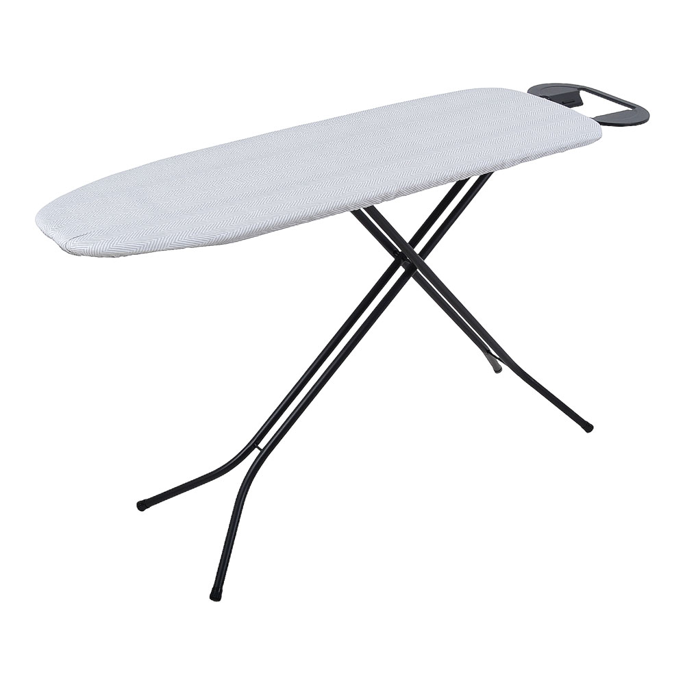 Σιδερώστρα με μεταλλικά μαύρα ματ πόδια,μεγάλη επιφάνεια σιδερώματος,ρύθμιση και ασφάλεια ύψους από 60 έως 92εκ.,θέση τοποθέτησης για το σίδερο και αντιολισθητικά ποδαράκια για μεγάλη ευστάθεια και σταθερότητα.Διαθέτει κάλυμμα 100% βαμβακερό.. Σιδερώστρα ατμού κατασκευασμένη από μέταλλο Φ21x0,6mm, βαμμένο με ηλεκτροστατική βαφή σε μαύρο ματ χρώμα, μεγάλης ανθεκτικότητας στο χρόνο. Διαθέτει 100% βαμβακερό κάλυμμα και ειδική επιφάνεια με πλέγμα για την καλύτερη κυκλοφορία του ατμού με αποτέλεσμα άψογο και γρήγορο σιδέρωμα. Έχει δυνατότητα ρύθμισης του ύψους από 60 έως 92 εκατοστά ανάλογα με τις ανάγκες σας, θέση τοποθέτησης για το σίδερο και αντιολισθητικά ποδαράκια για μεγάλη ευστάθεια και σταθερότητα. Η συνολική διάσταση της σιδερώστρας είναι 38x142εκ. και η διάσταση επιφάνειας σιδερώματος είναι 38x120εκ Κλείνει και αποθηκεύεται εύκολα όταν δεν χρησιμοποιείται.