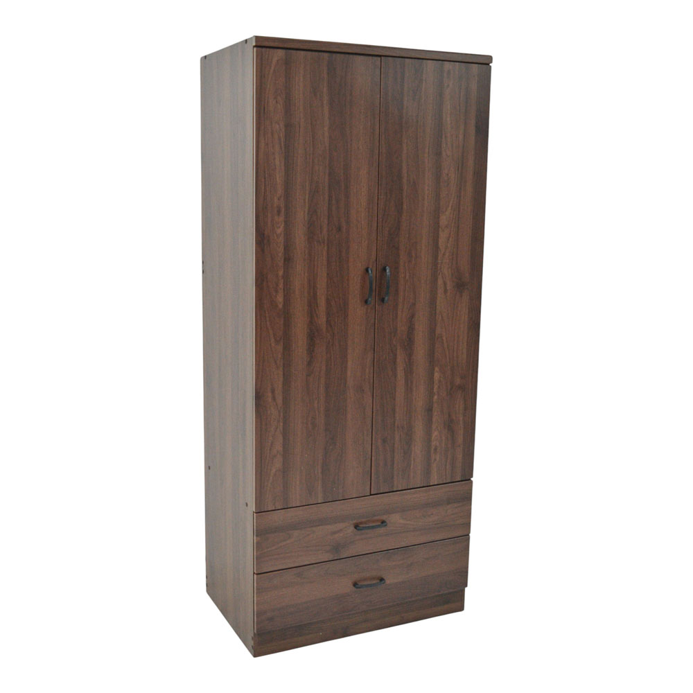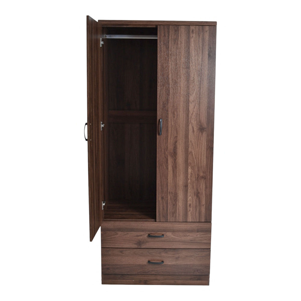 Ντουλάπα ξύλινη σε καρυδί χρώμα, με δύο φύλλα, μεταλλική ράγα για κρεμαστά ρούχα και δύο συρτάρια. Εξαιρετικής κατασκευής με μοντέρνο σχεδιασμό. Στην συσκευασία περιλαμβάνονται οδηγίες συναρμολόγησης.. Ξύλινα έπιπλα κομψού και μοντέρνου σχεδιασμού ιδανικά για κάθε χώρο. Αποτελούν πρακτική λύση για κάθε σπίτι καθώς ταιριάζουν σε κάθε στυλ διακόσμησης. Ανανεώστε το σαλόνι, το γραφείο ή το υπνοδωμάτιο εύκολα και οικονομικά. Επιλέξτε το χρώμα και το σχέδιο που ταιριάζει απόλυτα στον χώρο σας. Διαστάσεις Κιβωτίου : 193x53x10,5.