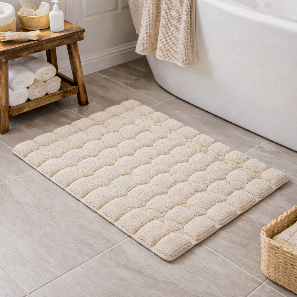 Χειροποίητο υφαντό πατάκι με ανάγλυφο γεωμετρικό μοτίβο κυψελωτής μορφής, σχεδιασμένο για άνεση και ασφάλεια στον χώρο του μπάνιου. Κατασκευασμένο από 100% βαμβάκι...