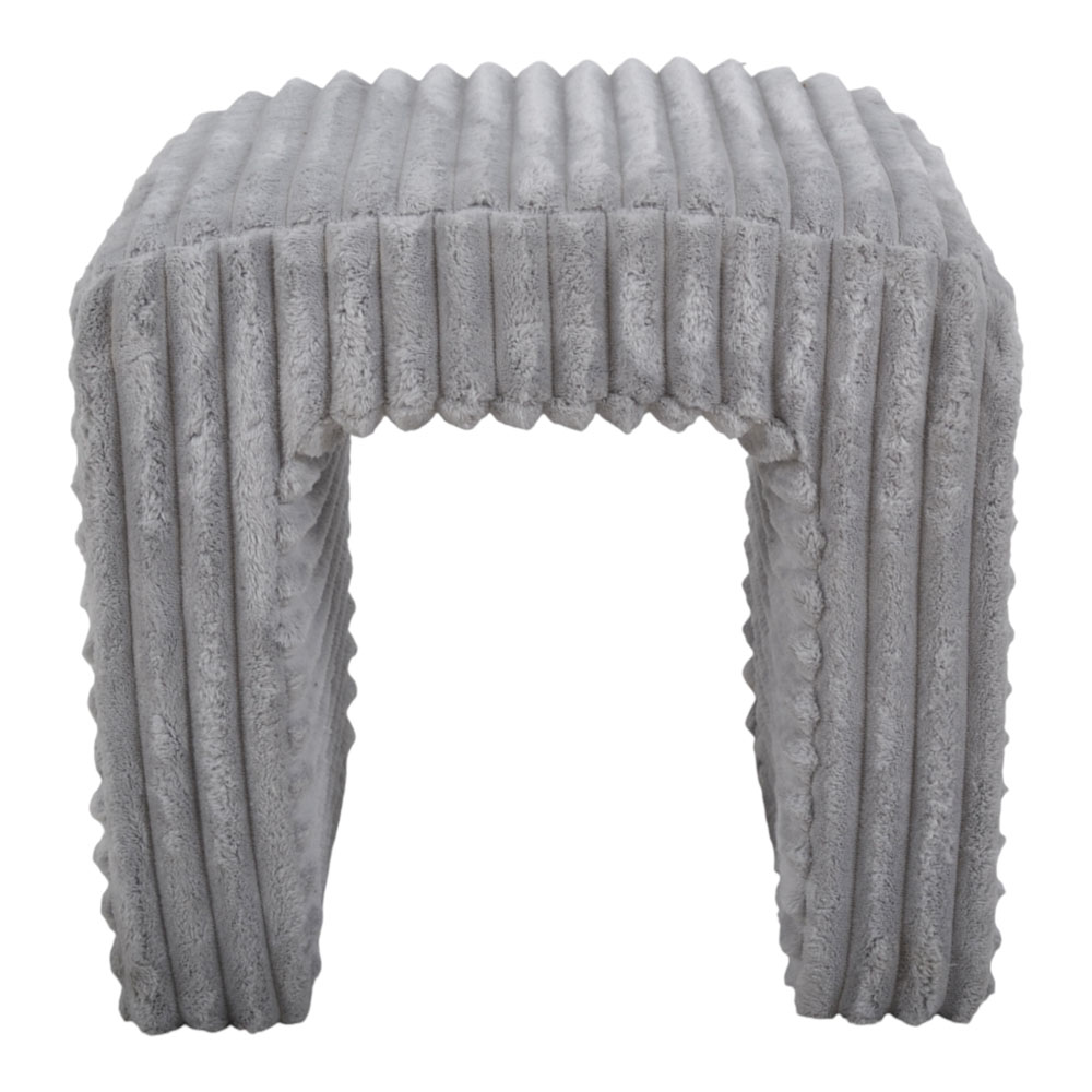 Σκαμπό με εσωτερικό ξύλινο σκελετό και υφασμάτινη επένδυση με βελούδινη, ανάγλυφη υφή, που προσφέρει άνεση και πρακτικότητα για καθημερινή χρήση. Το μαλακό του κάθισμα και ο μοντέρνος σχεδιασμός το καθιστούν ιδανικό ως βοηθητικό κάθισμα ή υποπόδιο σε καθιστικό και υπνοδωμάτιο.