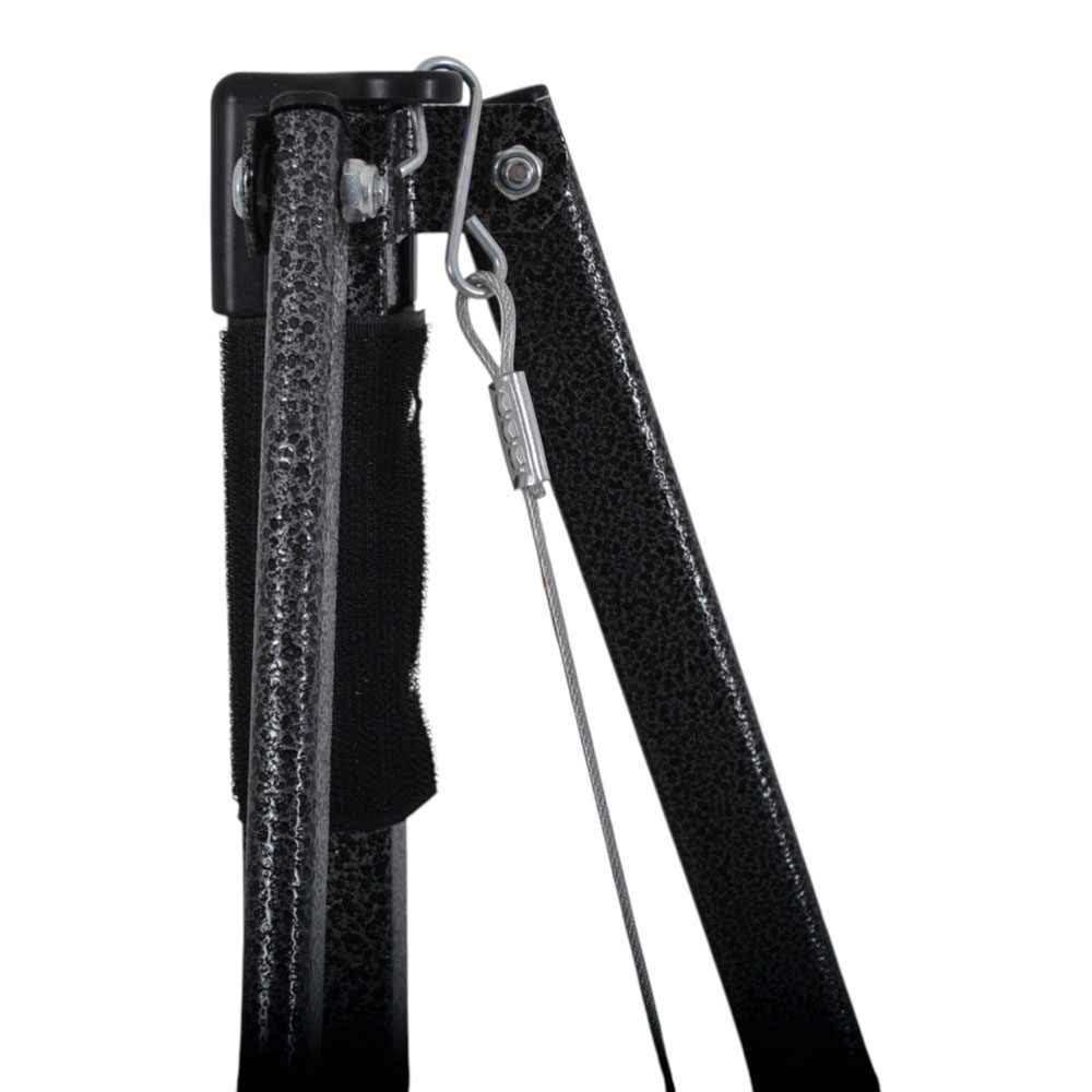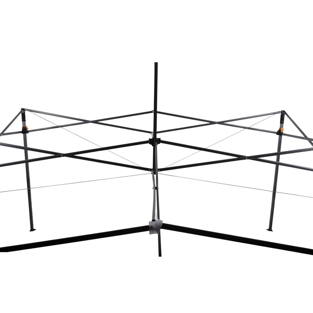 Ενισχυμένο πτυσσόμενο κιόσκι σχεδιασμένο για μεγαλύτερη σταθερότητα στον άνεμο, διαθέτει ανθεκτικό μεταλλικό σκελετό και αδιάβροχο πολυεστερικό ύφασμα 420D για προστασία από τον ήλιο και τις καιρικές συνθήκες. Για επιπλέον αντοχή, διαθέτει 4 συρματόσχοινα από τις γωνίες προς τον κεντρικό πυλώνα, καλυμμένα με PVC, που ενισχύουν τη σταθερότητα της κατασκευής. Το σύστημα στήριξης προσφέρει 3 ρυθμίσεις ύψους (185/193/210εκ.) με κλείδωμα ασφαλείας.. Η διάσταση του κιόσκι είναι 3x3 μ. με μέγιστο ύψος 3,20 μ., προσφέροντας άνετο χώρο σκίασης. Τα πόδια διαθέτουν ενισχυμένη κατασκευή (30x30x0,7 mm στο επάνω μέρος και 25x25x0,7 mm στο κάτω), ενώ το εσωτερικό πλέγμα 13x25x0,5 mm εξασφαλίζει αυξημένη σταθερότητα και αντοχή. Παραδίδεται σε συσκευασία κουτιού για εύκολη μεταφορά και αποθήκευση, αποτελώντας πρακτική λύση για κάθε υπαίθρια δραστηριότητα.
