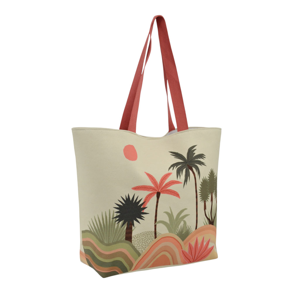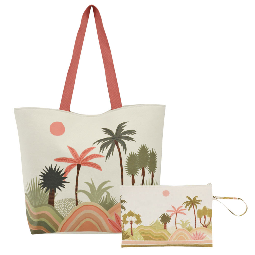 Τσάντα θαλάσσης υφασμάτινη από πολυεστέρα, ιδανική για παραλία και καλοκαιρινές εξορμήσεις. Διαθέτει ευρύχωρο εσωτερικό για άνετη αποθήκευση όλων των απαραίτητων, ενώ συνοδεύεται από νεσεσέρ στο ίδιο σχέδιο για οργάνωση μικροαντικειμένων. Οι ανθεκτικές χειρολαβές προσφέρουν άνετη μεταφορά, καθιστώντας την ιδανική επιλογή για καθημερινή χρήση στην παραλία. Διαστάσεις τσάντας: 50x15x37εκ. νεσεσέρ: 30x20εκ.