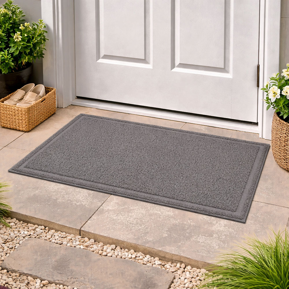 Πατάκι PVC 40x60εκ σε γκρι χρώμα με αντιολισθητική βάση. Ανθεκτικό και απορροφητικό, στεγνώνει γρήγορα και παραμένει σταθερό στο δάπεδο, προσφέροντας ασφάλεια και άνεση. Ιδανικό για είσοδο, μπάνιο ή κουζίνα.