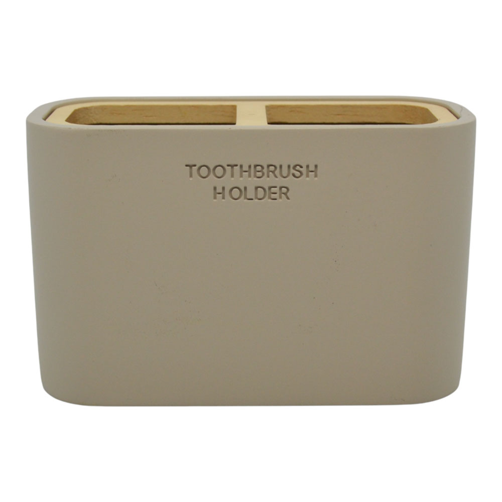 Ποτηροθήκη για οδοντόβουρτσες με μοντέρνο σχεδιασμό, ιδανική για την οργάνωση του μπάνιου σας. Κατασκευασμένη από ανθεκτικό πολυεστερικό υλικό με λεπτομέρεια ξύλου στο επάνω μέρος, προσφέρει κομψότητα και φυσική αισθητική στον χώρο. Διαθέτει πρακτικούς διαχωριστές για σωστή τοποθέτηση των οδοντόβουρτσων, διατηρώντας τις καθαρές και τακτοποιημένες.