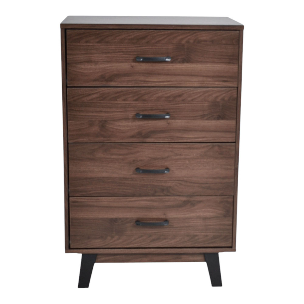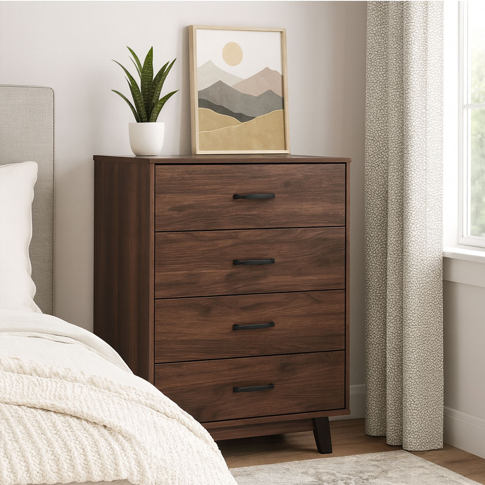 Συρταριέρα με μοντέρνο σχεδιασμό και καρυδί απόχρωση, που ταιριάζει εύκολα σε κάθε χώρο. Διαθέτει τέσσερα βαθιά συρτάρια, ιδανικά για αποθήκευση ρούχων και αντικειμένων. Τα συρτάρια έχουν εξωτερικό ύψος 13 εκ. και εσωτερικό 11 εκ., προσφέροντας άνεση και πρακτικότητα στην καθημερινή χρήση. Τα χερούλια και τα πόδια σε μαύρο χρώμα δημιουργούν μια κομψή αντίθεση, ενώ η σταθερή κατασκευή εξασφαλίζει αντοχή και διάρκεια στον χρόνο. Ιδανική επιλογή για υπνοδωμάτιο ή καθιστικό.. Στην συσκευασία περιλαμβάνονται οδηγίες συναρμολόγησης.