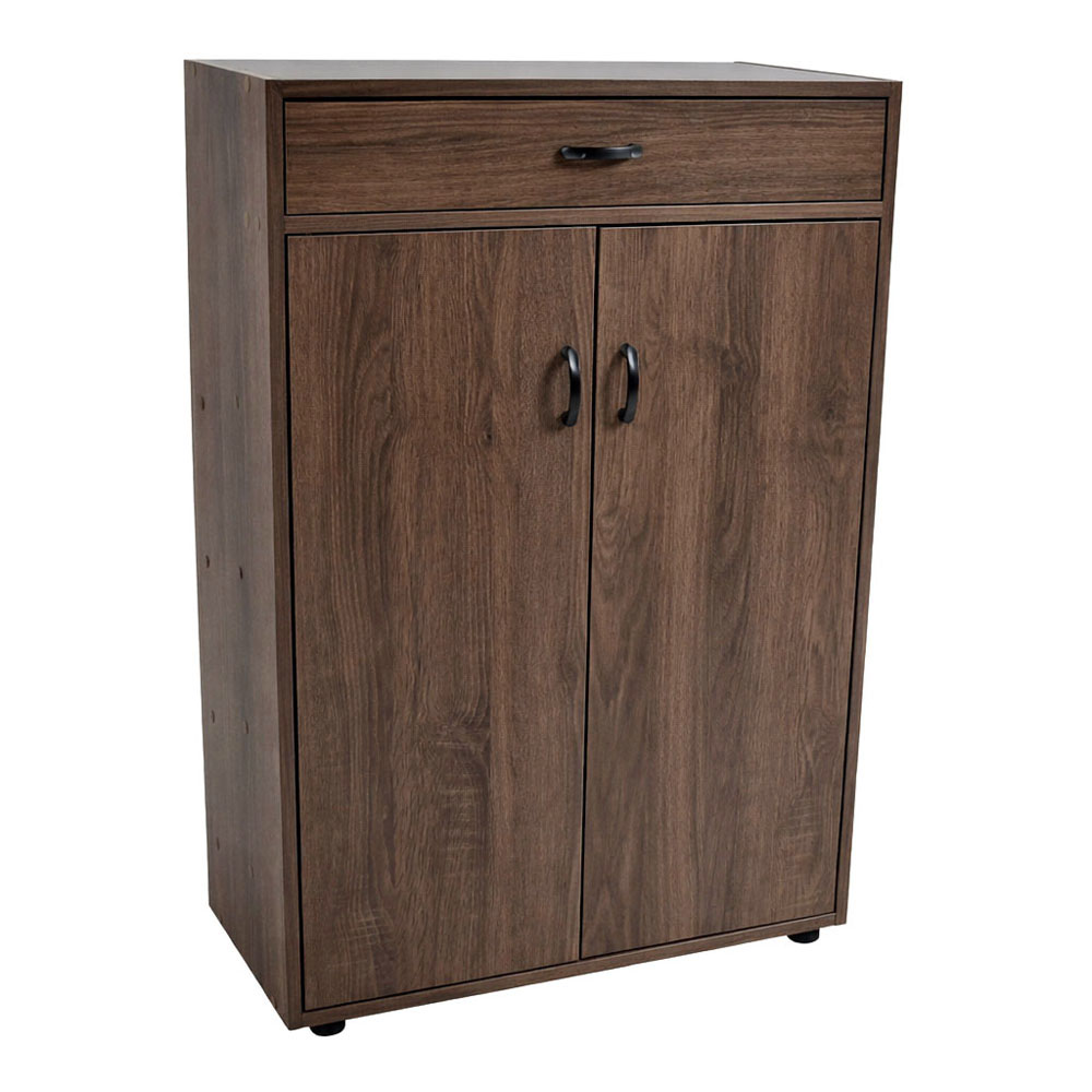 Ξύλινη παπουτσοθήκη με μοντέρνο και πρακτικό σχεδιασμό, ιδανική για την οργάνωση υποδημάτων σε κάθε χώρο. Διαθέτει 4 εσωτερικά ράφια που προσφέρουν άνετη και τακτοποιημένη αποθήκευση, ενώ το επάνω συρτάρι είναι ιδανικό για μικροαντικείμενα, όπως κλειδιά ή αξεσουάρ. Οι πόρτες προστατεύουν τα παπούτσια από σκόνη, ενώ η καρυδί απόχρωση σε συνδυασμό με τα μαύρα χερούλια προσδίδουν κομψότητα και ταιριάζουν εύκολα σε κάθε διακόσμηση. Σταθερή και λειτουργική επιλογή για είσοδο, υπνοδωμάτιο ή επαγγελματικό χώρο.
