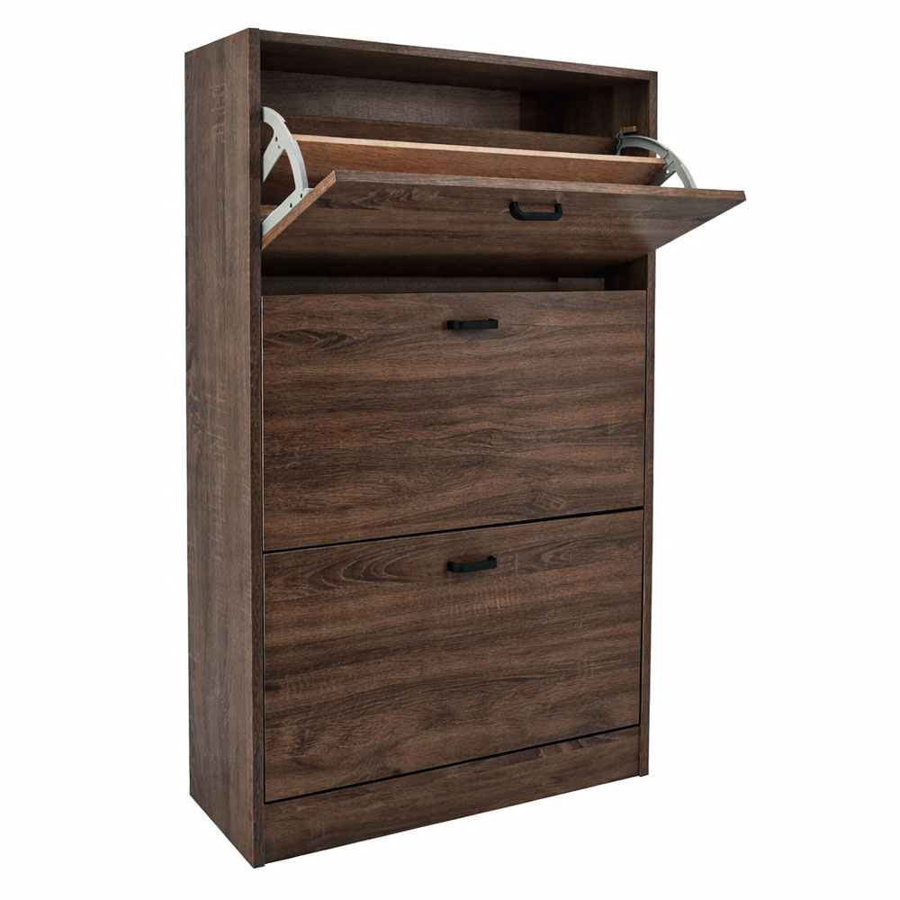 Παπουτσοθήκη ξύλινης κατασκευής με μοντέρνο και πρακτικό σχεδιασμό, ιδανική για εξοικονόμηση χώρου και οργάνωση υποδημάτων. Διαθέτει ανακλινόμενα ντουλάπια που επιτρέπουν εύκολη τοποθέτηση και γρήγορη πρόσβαση στα παπούτσια, διατηρώντας τα τακτοποιημένα και προστατευμένα από σκόνη. Διαθέτει πλάτη στο πίσω μέρος, προσφέροντας μεγαλύτερη σταθερότητα και καλύτερη προστασία των αντικειμένων. Το εσωτερικό μέγεθος κάθε ντουλαπιού είναι 58 εκ. μήκος, 30 εκ. πλάτος και 31 εκ. ύψος, προσφέροντας επαρκή χώρο για την αποθήκευση παπουτσιών. Ο slim σχεδιασμός της την καθιστά ιδανική για τοποθέτηση σε εισόδους ή στενούς χώρους. Διάσταση Κιβωτίου: 122x34,5x10,7εκ.